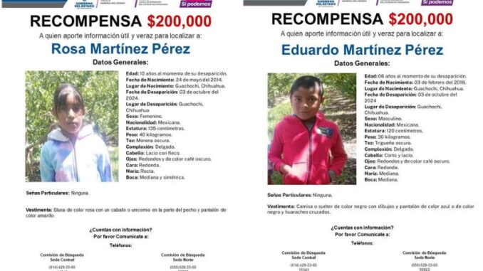 Guachochi Emite Comisión Local de Búsqueda recompensa para localizar a hermanitos desaparecidos en Guachochi noviembre 29, 2024 Reportero 2