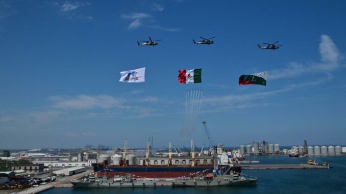 La presidenta Claudia Sheinbaum Pardo encabezó este sábado 4 de octubre de 2025 el 204 Aniversario de la Armada de México en el puerto de Veracruz.