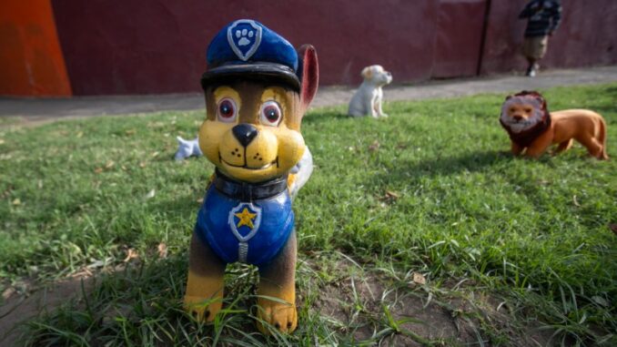 Entre las figuras que exhiben sobresalen los gallos, guacamayas, tigres, perros, imágenes religiosas como San Judas Tadeo y la virgen de Guadalupe.