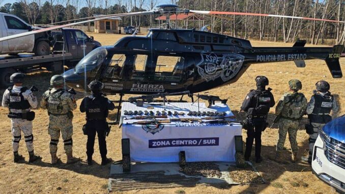 Guachochi.-  Elementos del Ejército, Guardia Nacional y policías estatales llevaron a cabo el aseguramiento de un arsenal, así como de vehículos presuntamente utilizados por el crimen organizado, luego de repeler una agresión armada por parte de civiles.