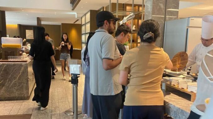 En una primera ocasión, el secretario de Organización de Morena fue captado desayunando en el hotel Okura de TokioJapón.