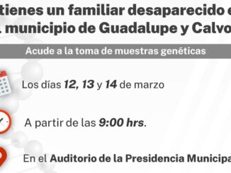 Guadalupe y Calvo Realizará FGE toma de muestras genéticas en Guadalupe y Calvo marzo 7, 2024 Reportero 2