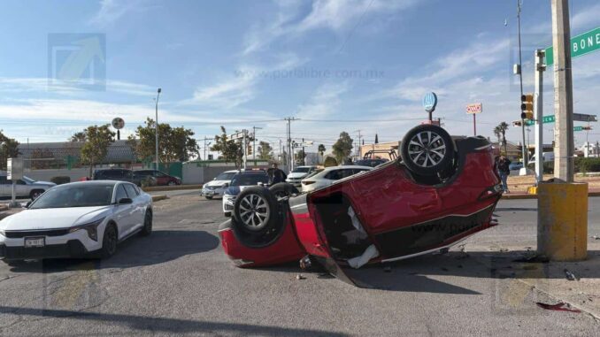 Noticias de Chihuahua.- Un aparatoso accidente se registró sobre la avenida Francisco Villa, a la altura de la lateral de Ortiz Mena, donde participaron una camioneta Tiggo 7 Chirey, color rojo, y una Mazda CX-30, color gris.
