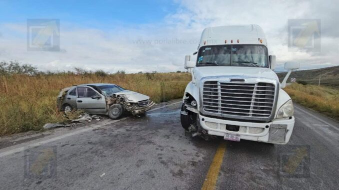 Un adulto y dos menores resultaron heridos; invadió el carril contrario y fue impactado por un tráiler