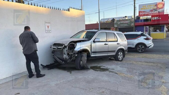 La maniobra provocó que la Honda impactara de lleno a la Infiniti, ocasionando que la primera camioneta perdiera el control y terminara proyectándose contra la barda de un negocio cercano. La fuerza del golpe dejó visibles daños estructurales tanto en el vehículo como en el muro afectado.