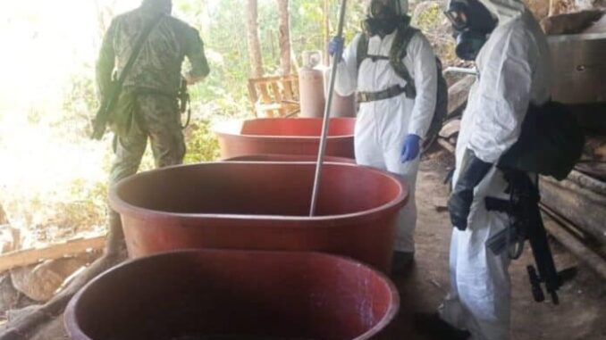 Fuerzas federales desmantelaron un laboratorio clandestino en Guerrero que presuntamente era utilizado para elaborar drogas sintéticas.