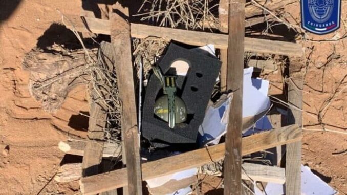 A las 15:40 horas del día 01 de enero del presente año, se llevó a cabo la destrucción de un artefacto explosivo, tipo granada de fragmentación, asegurada en Nuevo Casas Grandes, durante la detención de un masculino por robo de vehículos.