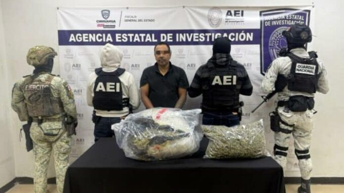 Policías del Centro de Operaciones Estratégicas de la Agencia Estatal de Investigación de la Zona Norte, detuvieron en flagrancia a quien dijo llamarse Arón Esteban L. A., por encontrase en posesión de una hierba seca y olorosa con las características de la marihuana.