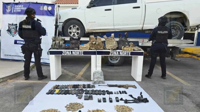 En intervenciones adicionales se aseguraron una Dodge RAM con reporte de robo de junio de 2024 en El Paso, Texas, y una Ford F-150 color gris con reporte de robo de noviembre de 2025. En estos dos vehículos se localizaron diversos artículos vinculados a hechos violentos en la zona.