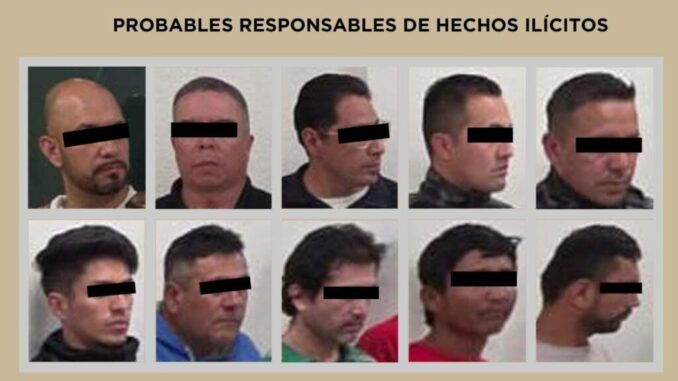 El resto de los detenidos fueron identificados como Juan ‘N’, de 24 años, Jonathan ‘N’, de 35 años, Abel ‘N’, de 38 años, Francisco ‘N’, de 47 años, Rogelio ‘N’, de 56 años, Marcos ‘N’, de 32 años, Miguel ‘N’, de 33 años, Jarib ‘N’, de 48 años, y Leonel ‘N’, de 53 años.