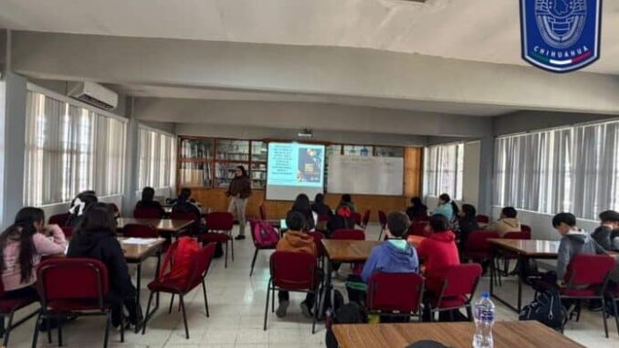 En continuidad con los trabajos para impulsar espacios y entornos seguros en las instituciones educativas, el Grupo de Orientación Escolar Chihuahuense (GOECHI) de la Agencia Estatal de Investigación (AEI), llevó sus jornadas de intervención al turno vespertino de la Secundaria Técnica Número 53, en la ciudad de Parral.