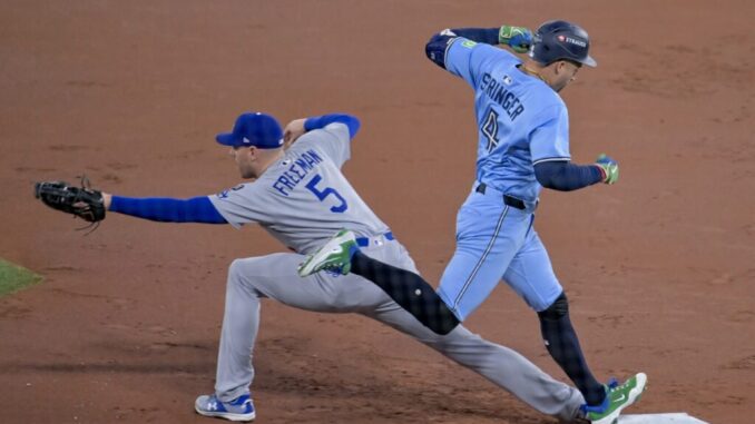 Los Azulejos respondieron anotando una vuelta (1-3) en el cierre de esa misma tercera entrada cuando, tras dos outs, George Springer conectó un hit de dos bases frente a Yoshinobu Yamamoto, remolcando a Addison Barger con la primera anotación de los locales en el encuentro.