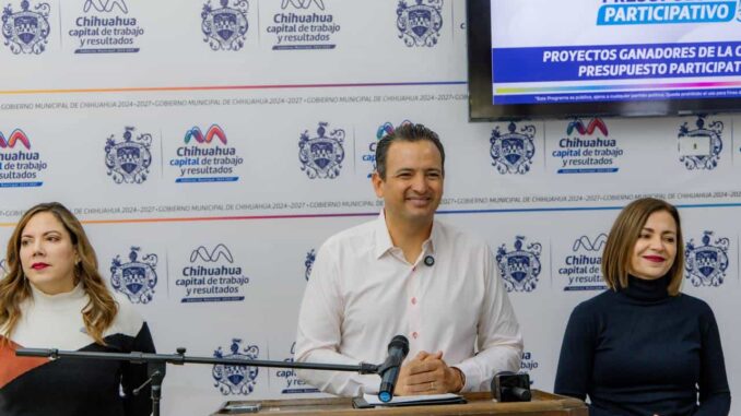 Chihuahua. – El alcalde Marco Bonilla, presentó los 101 proyectos ganadores del Presupuesto Participativo 2026, los cuales fueron validados tras la consulta pública realizada en noviembre del año pasado, donde la ciudadanía se organizó para votar por sus necesidades para su colonia, proceso realizado por medio de una jornada cívica llevada con éxito.