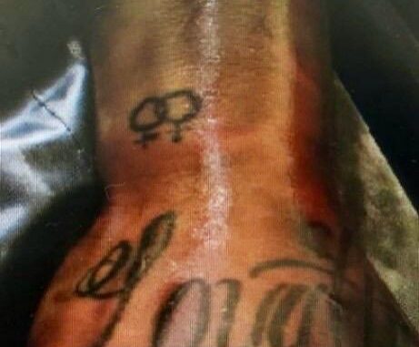 Como señas particulares: tiene un tatuaje de un conejo con un moño (figura de Playboy) a un costado del ojo derecho; tatuaje en antebrazo derecho de letras asiáticas; tatuaje en el dorso de la mano derecha con la leyenda “loyalty”; tatuaje en el dorso de la mano izquierda con la leyenda “trust”; tatuaje en el antebrazo derecho y antebrazo izquierdo con aparentes símbolos de género; tatuaje en el antebrazo izquierdo con dos siluetas y un aparente símbolo de género.