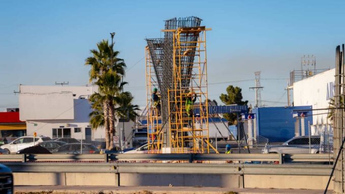 Actualmente, las labores se realizan en varios frentes: armado de acero para columnas, colado de los estribos de las rampas de acceso y salida, así como excavaciones para el desplante de las zapatas que sostendrán la estructura.