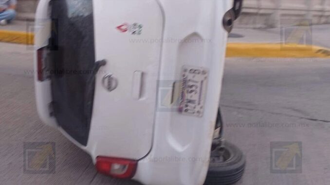 Chihuahua.- Un accidente vehicular ocurrido la tarde de este lunes dejó como saldo un automóvil volcado sobre su costado izquierdo en el cruce del Periférico de la Juventud y la calle Hacienda del Carrizal, al norte de la ciudad. La colisión involucró a dos vehículos particulares: un Nissan Altima blanco y un Nissan March del mismo color.