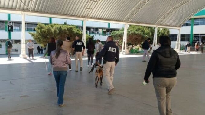 Junto con el personal de la AEI, estuvieron agentes caninos de la Unidad de Búsqueda y Rastreo K-9, con el propósito de propiciar entornos escolares sanos y seguros libres de objetos no académicos, que puedan significar un riesgo para el estudiantado.