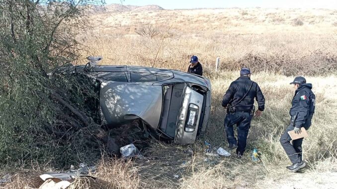 Testigos indicaron que el vehículo se desplazaba a alta velocidad, lo que habría provocado que el automotor saliera abruptamente de la cinta asfáltica y terminara impactándose, ya volcado, contra un huizache a un costado de la carretera, generando una escena de gran riesgo y movilizando a los servicios de emergencia.