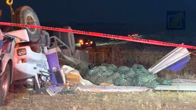 Santa Isabel.- Un camión de Gobierno del Estado, que transportaba toneladas de papa, sufrió una salida de camino con volcadura sobre la carretera que conecta a Cuauhtémoc con Chihuahua, provocando la muerte de uno de sus tripulantes y dejando a otro lesionado.